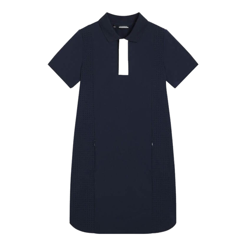 L'abito Denise Golf Dress di J. Lindeberg è un abito elegante e minimalista che ti manterrà fresca e asciutta quando fa caldo. Presenta pannelli laterali in rete traforata, una vestibilità dritta ed è progettato per mantenerti fresco quando le temperature sono calde.