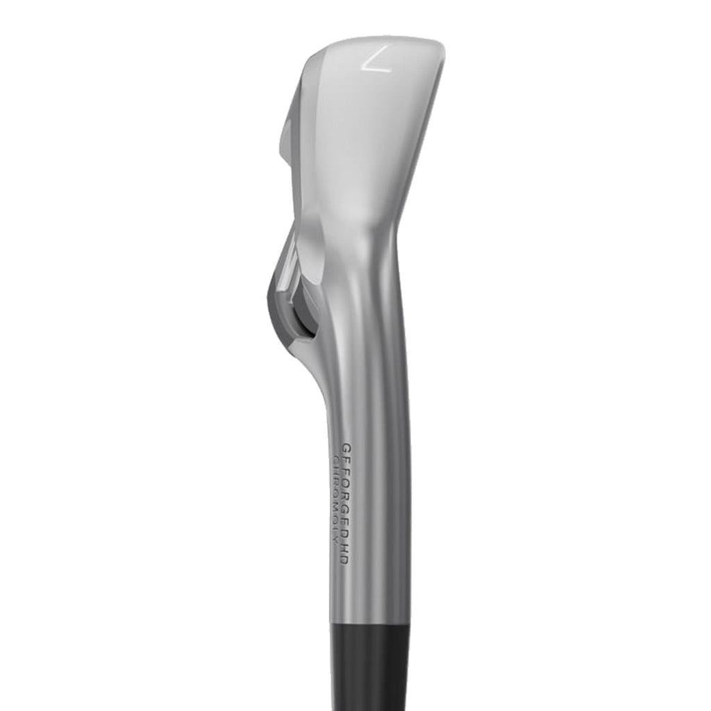 I ferri lunghi (J4–J7) sono realizzati da 4120 Cromoly Sono forgiati e presentano una superficie di battuta ultrasottile di soli 2,2 mm. Un innovativo canale fresato che si allarga verso il tallone e la punta aumenta velocità della palla e migliora la Tolleranza ai guasti – ideale per i giocatori che desiderano combinare lunghezza e stabilità.