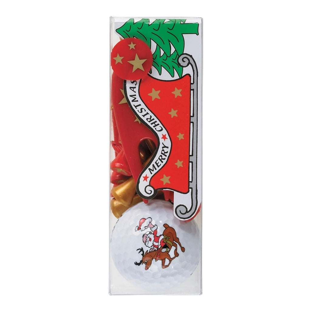 Dieses festliche Golf-Geschenkset bringt Weihnachtsstimmung auf den Golfplatz. Es enthält einen Golfball mit charmantem Weihnachtsmann-Motiv, passende rote und goldene Tees, eine praktische Pitchgabel und einen Ballmarker, alles ansprechend in einer Plastikbox verpackt.